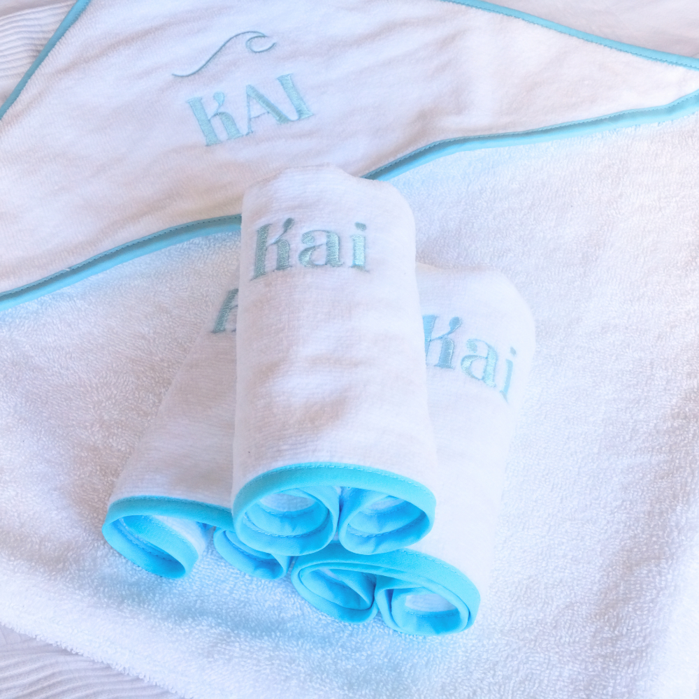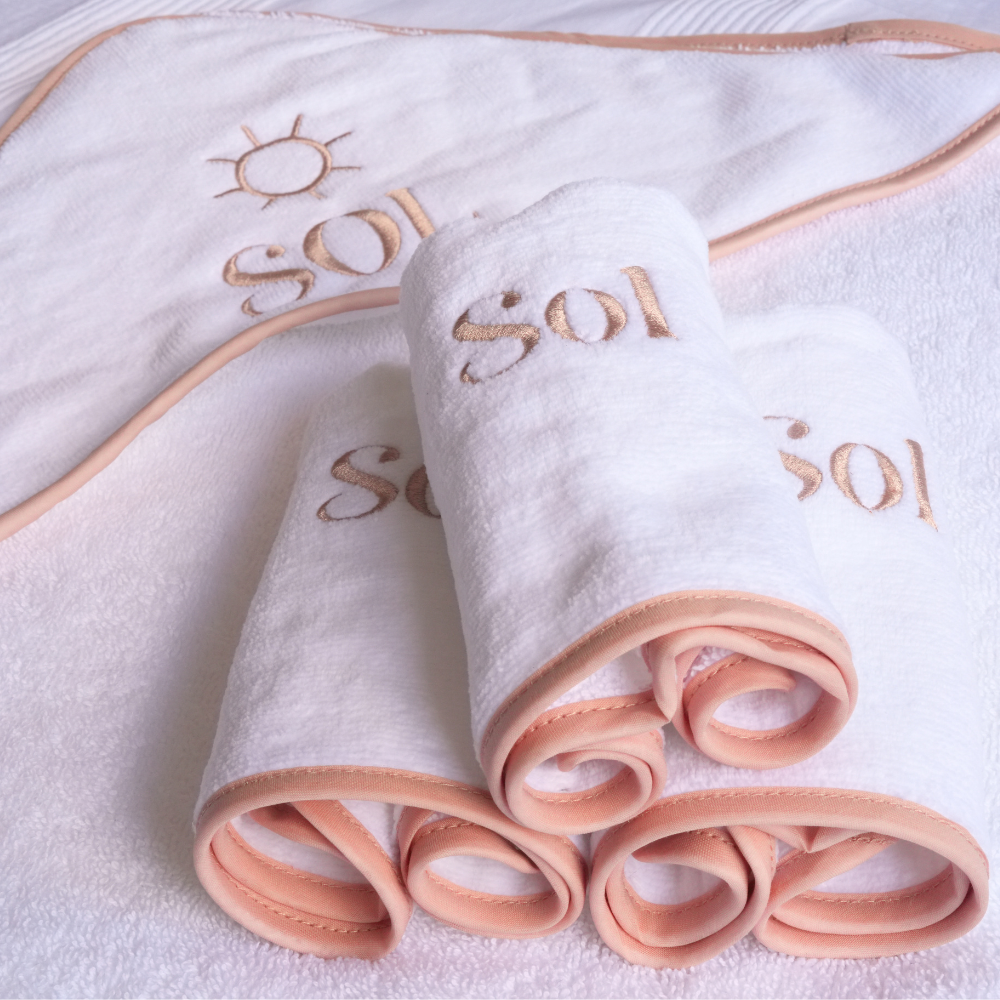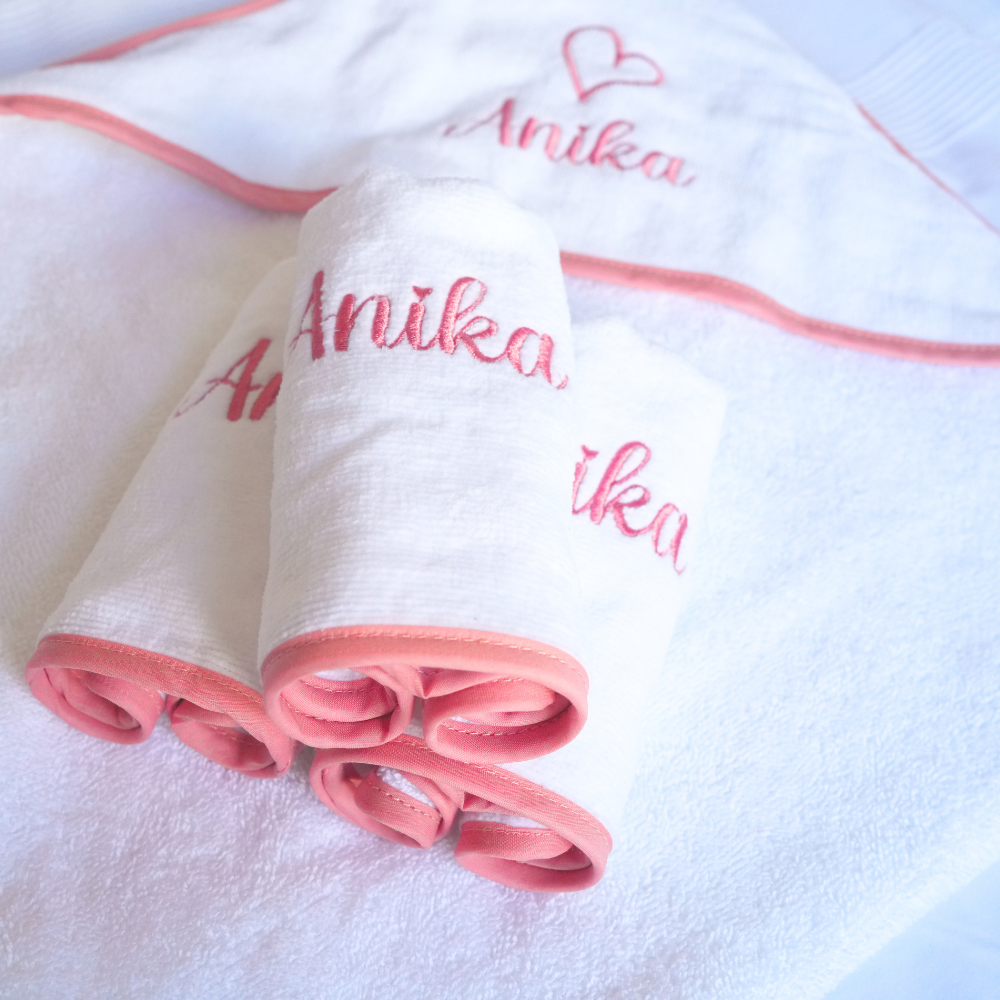 Luxe Baby Hooded Bath Towel - White with Dusty Pink Trim