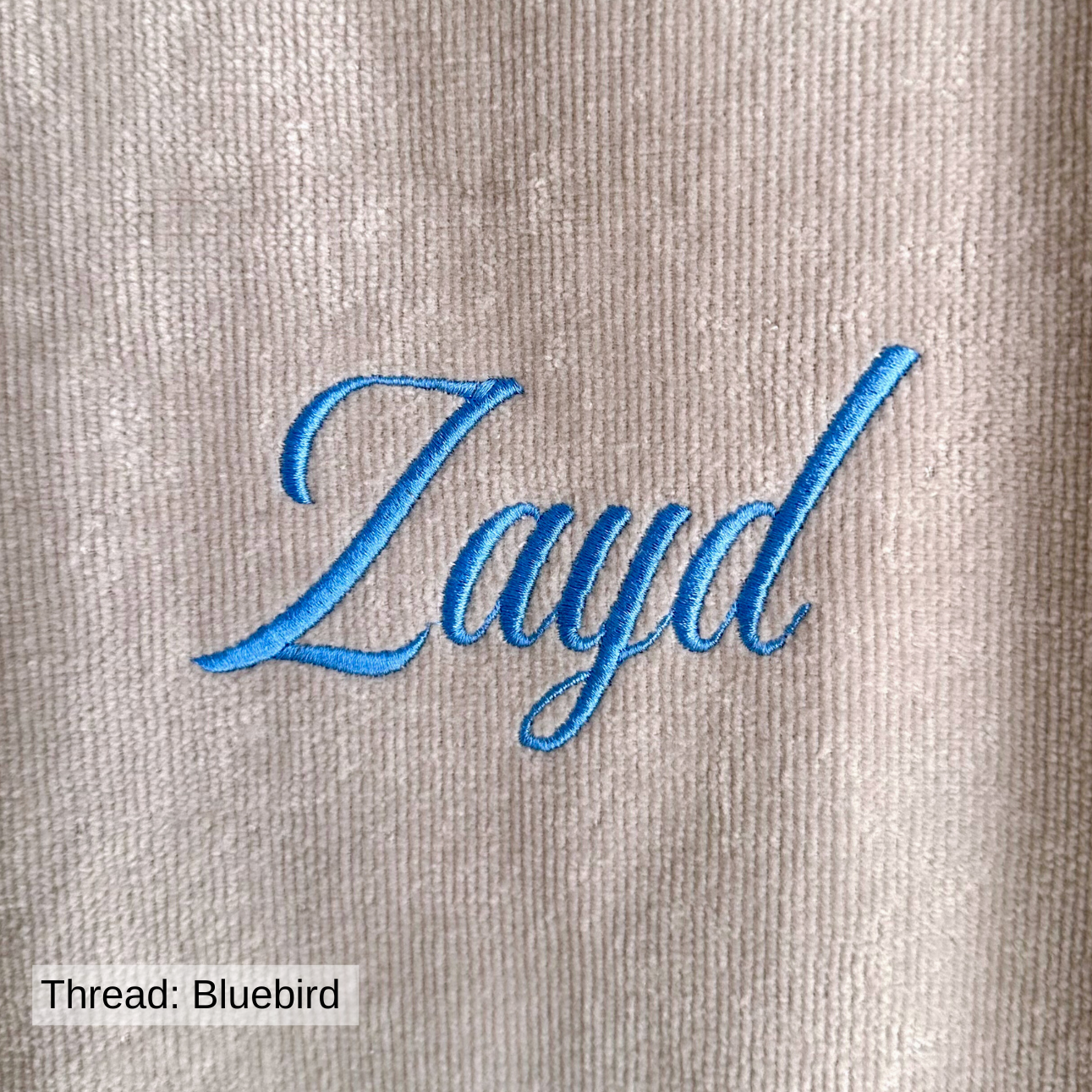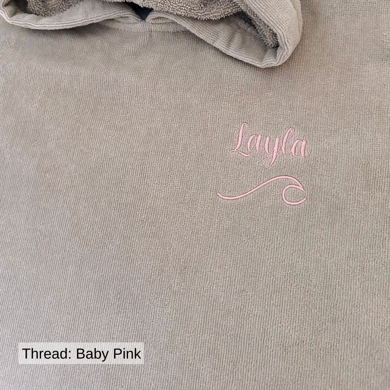 Personalisation Options: Make the Luxe Swim Poncho even more special with custom embroidery options: